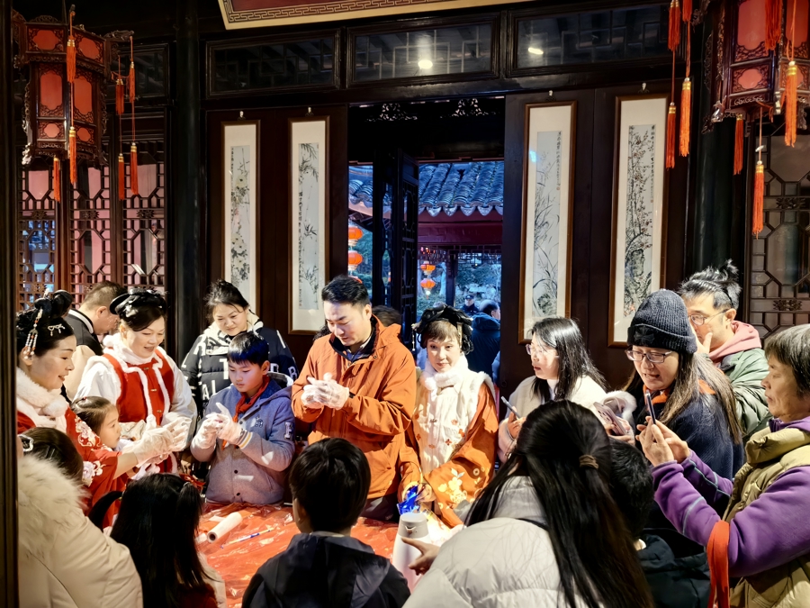 “带着孩子来逛古园、猜文虎,还能亲手作念灯笼、学非遗,不仅感受到了元宵的吵杂,还让孩子了解了传统本事,他们吵着说天天过元宵就好了!”市民葛磊牵着刚作念完灯笼的孩子,脸上尽是幸福的笑意。