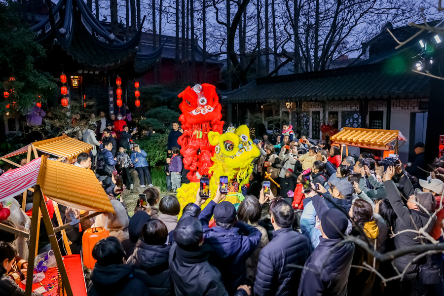 行为青浦古城文脉的进击载体,始建于清乾隆十年(1745年)的曲水园,素有“沪上名园,江南雅韵”之称,园内亭台楼阁、曲水回廊交集有致,承载着青浦近300年的江南文化牵记。马年元宵之际,这座古园披灯挂彩、焕新迎客,大师赏灯猜谜、品食赏艺,在欢声笑语中共度团圆佳节。