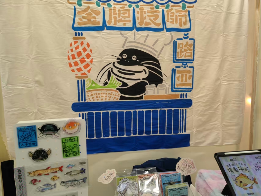 金牌技师(路亚)摊位上画的鲶鱼大厨 钟菡 摄