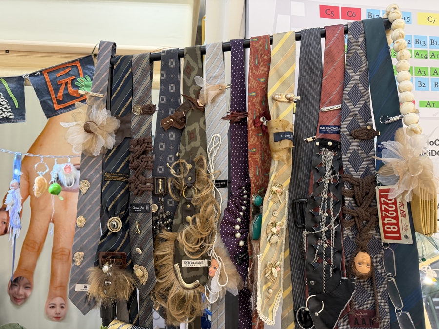 比起世俗的市集,“女子女子市集”更具艺术感。“多样各样的领带等于我的画布。”“拥抱公园”控制东说念主Nico说,在她的摊位上,一条条被“重制”的领带颇为显眼。这些领带中有的是世俗品牌,还有不少是迪奥、阿玛尼等迫害牌的中古。她把中古领带讳饰上多样各样的物件,有珍珠、毛发、芭比娃娃、链条,致使是旧的电子腕表等,使之成为颇具个东说念主审好意思的艺术品。杨超过、陆虎、胡先煦等明星艺东说念主齐曾上身她制作的领带或腰带。“每一件齐是唯独无二的,齐是孤品。”