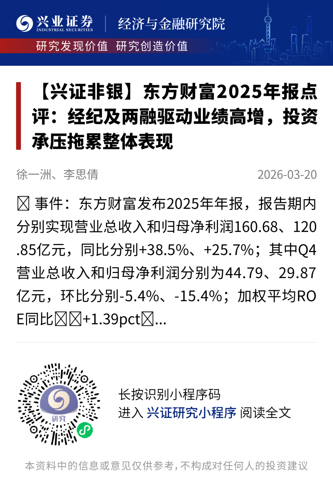 证券筹商讲述:《东方资产2025年报点评:经纪及两融运转事迹高增,投资承压拖累举座推崇》