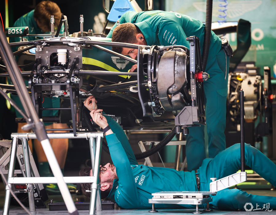 3月12日,2026赛季天下一级方程式锦标赛(F1)中国大奖赛开赛前夜,各车队责任主谈主员与工程师在上海海外赛车场P房(赛车维修站)内对赛车进行终末调试,全力参加赛前准备责任。