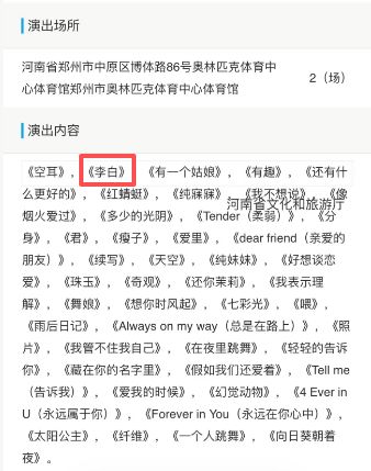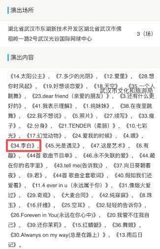 记者还通过文化市集技能监管与干事平台查询到,单依纯接下来的武汉、郑州场次演唱会的报批歌单中也均有《李白》。