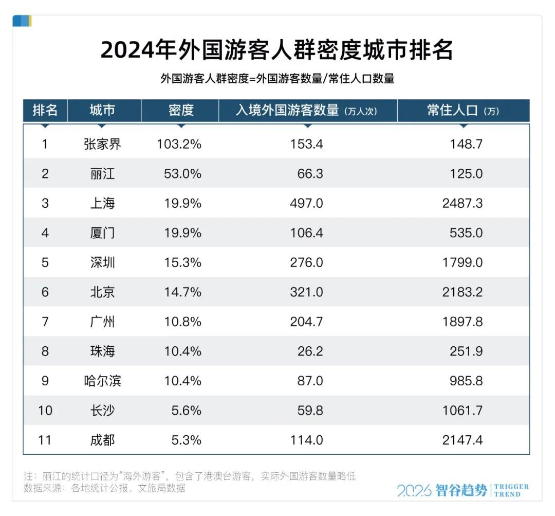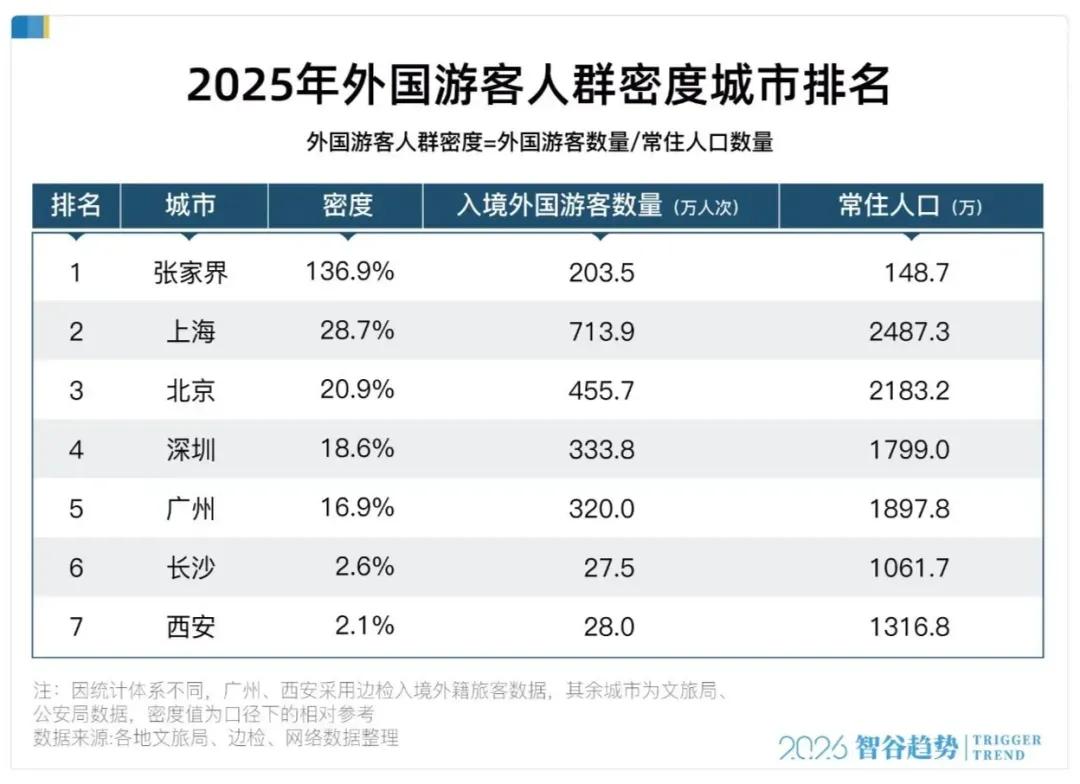 异邦游来宾群密度最高的城市,却是一座不靠海、不沿边的湖南小城——张家界,相同是断崖式率先。